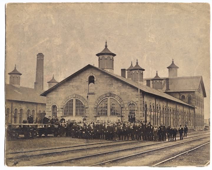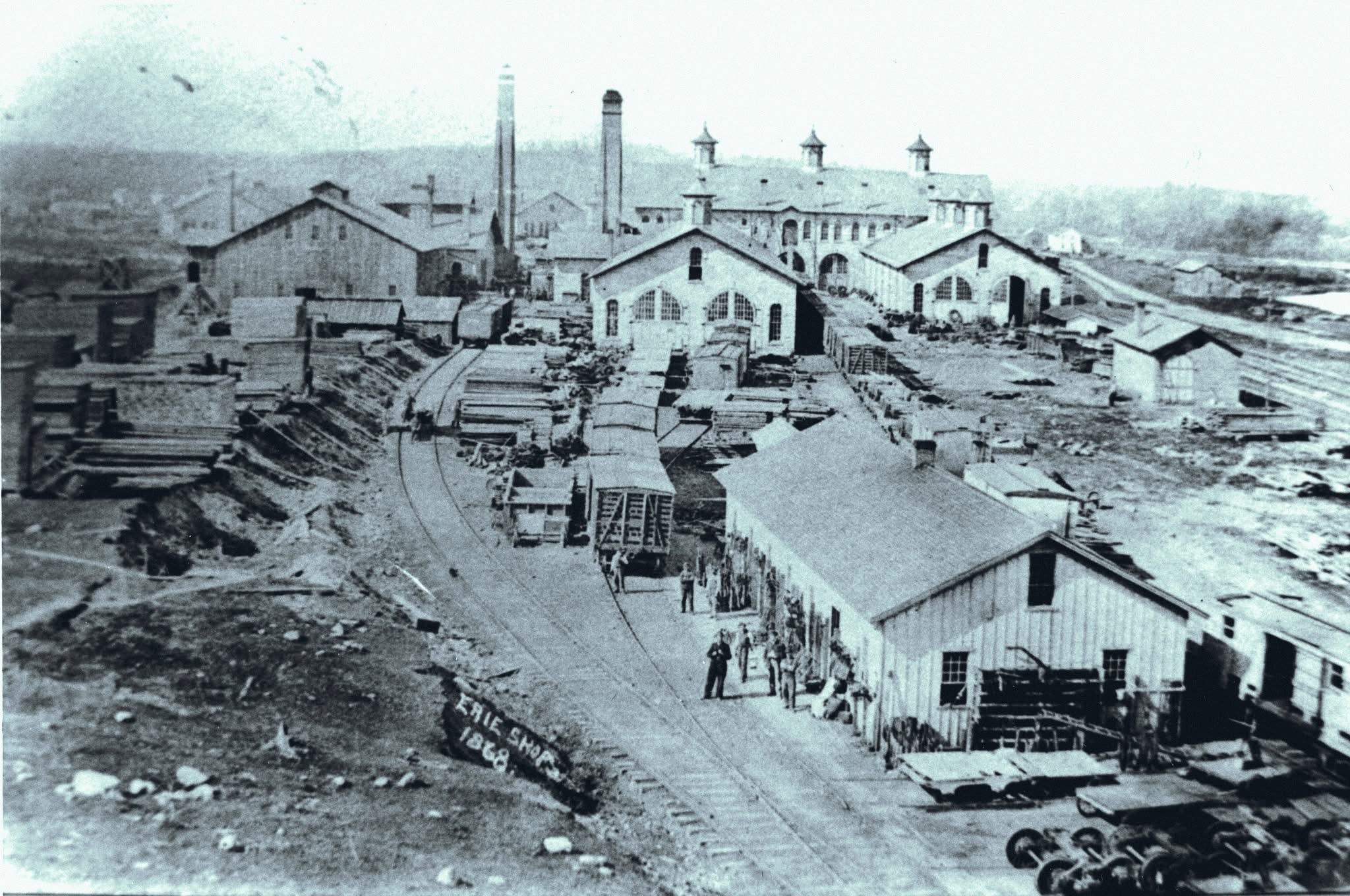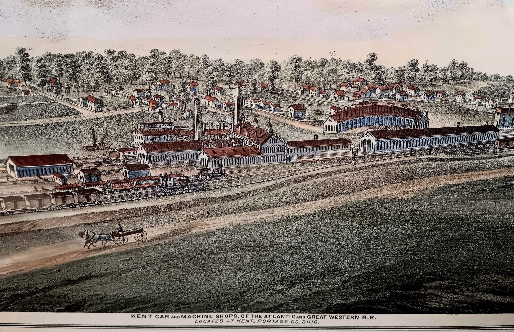 1874 lithograph of the Atlantic & Great Western RR shops that was created for the Centennial Atlas of Portage County.